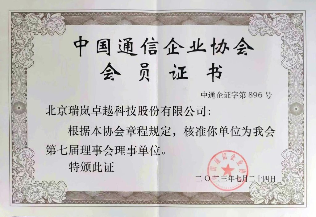 2023年7月7日至7月13日,中國通信企業(yè)協(xié)會第七屆二次理事會議暨七屆一次常務(wù)理事會議以通訊方式在京召開,經(jīng)會議審議表決通過決定增補北京瑞嵐卓越科技股份有限公司為第七屆理事會單位,同時公司總經(jīng)理劉文冬先生擔任為理事。